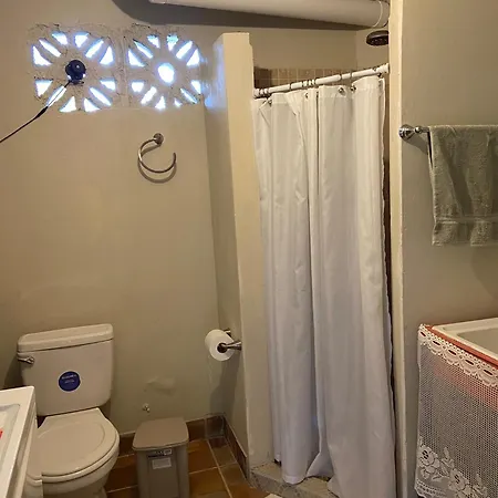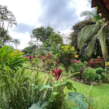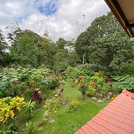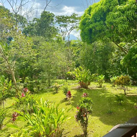 Overlooking the garden, the La Fortuna property welcomes its guests. Serenity villa includes a bathroom with a separate toilet and a shower. Bathrooms also feature dryers and towels for added comfort.